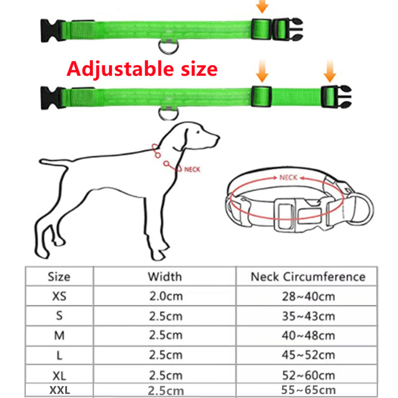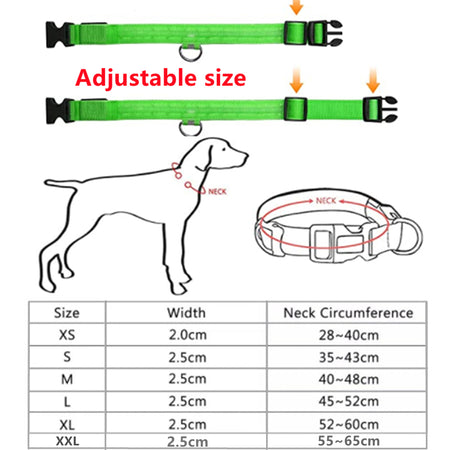 LED Light-Up Dog Collar – Adjustable Battery LED, Flashing Glow-in-the-Dark Night Safety Anti-Lost