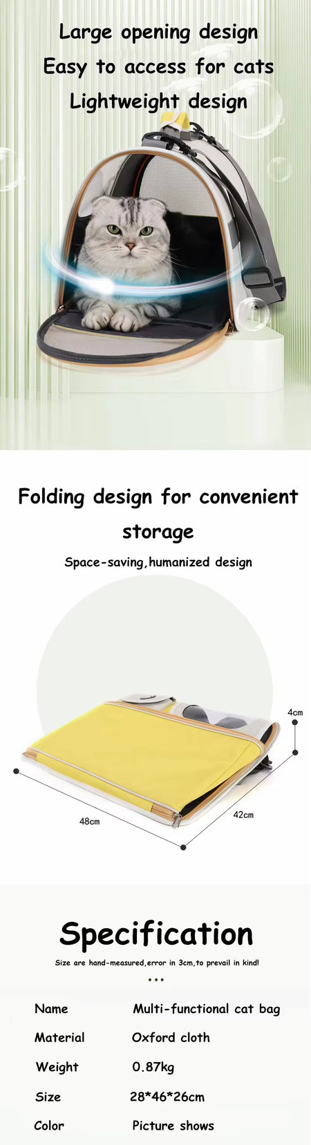# Product Description Transport your pet in style and comfort with this innovative foldable pet backpack. Crafted from durable PVC and PC materials, it combines lightweight portability with reliable protection for cats and dogs during outings and travel. The compact design folds flat for convenient storage when not in use, while the animal pattern adds a playful touch. Perfect for vet visits, outdoor adventures, or quick trips around town, this carrier keeps your pet secure and gives you hands-free convenience. Ideal for pet owners who value practicality without compromising on design.